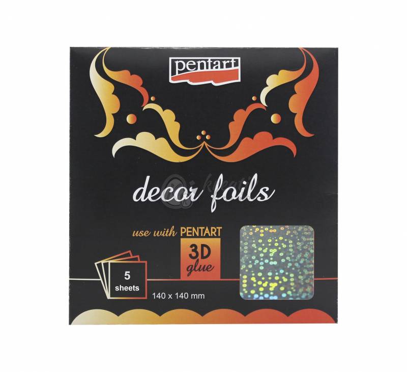 Hologram mintázatú lapok látványos dekorációk készítéséhez. PENTART 3D ragasztóval alkalmazva, különleges, domborított hatást érhetünk el. A felületet vízbázisú fényes lakkal védjük.
